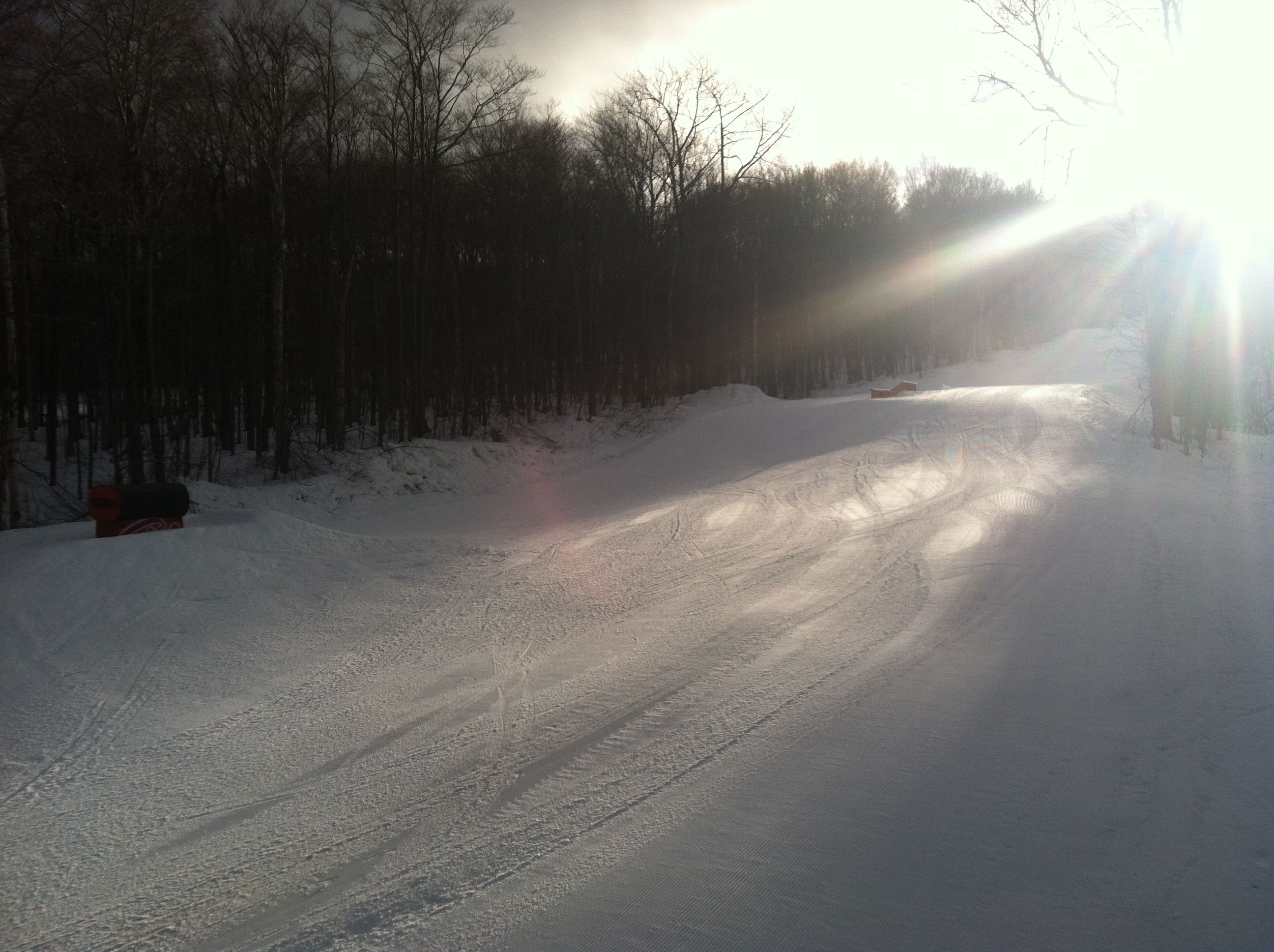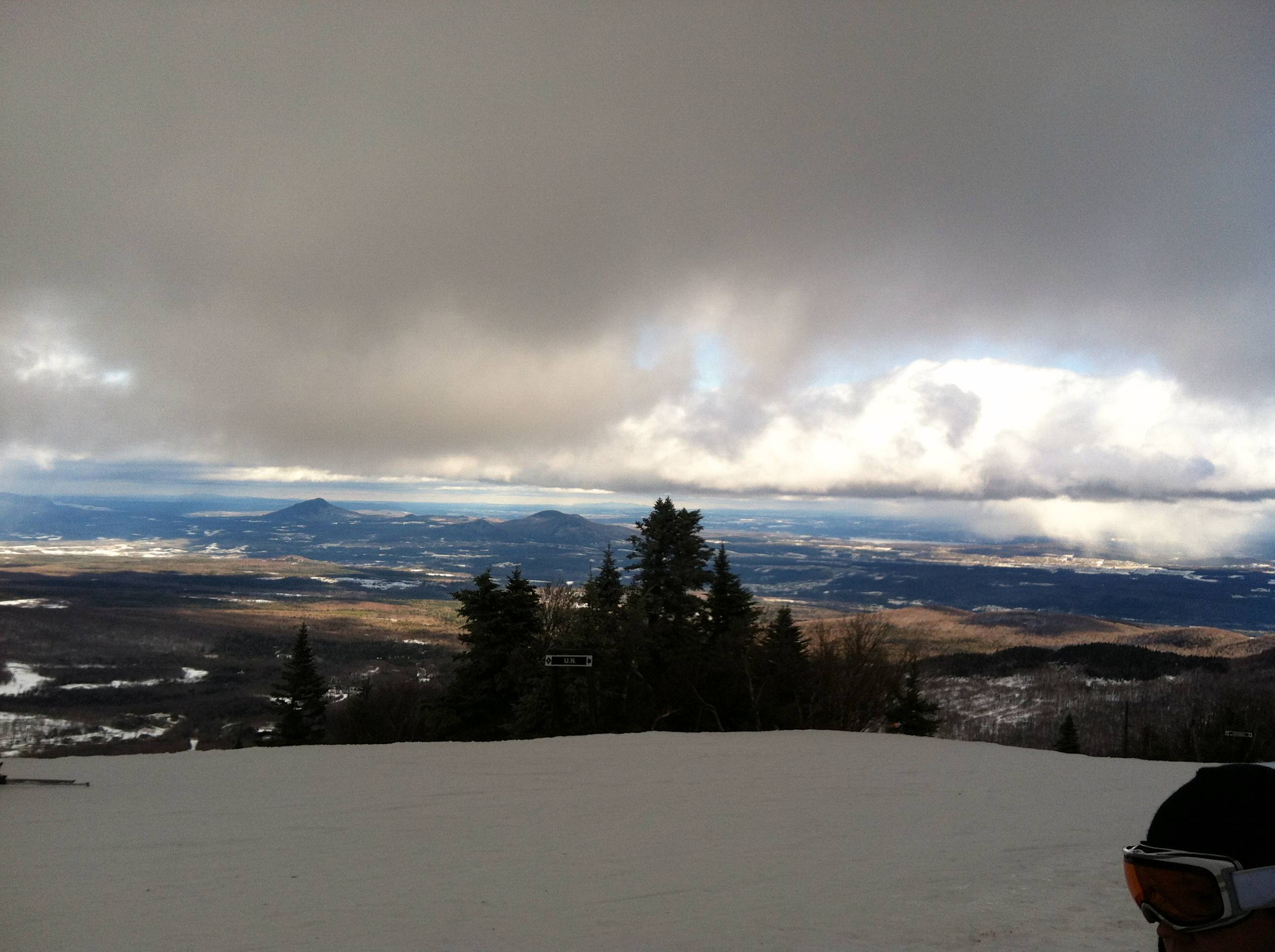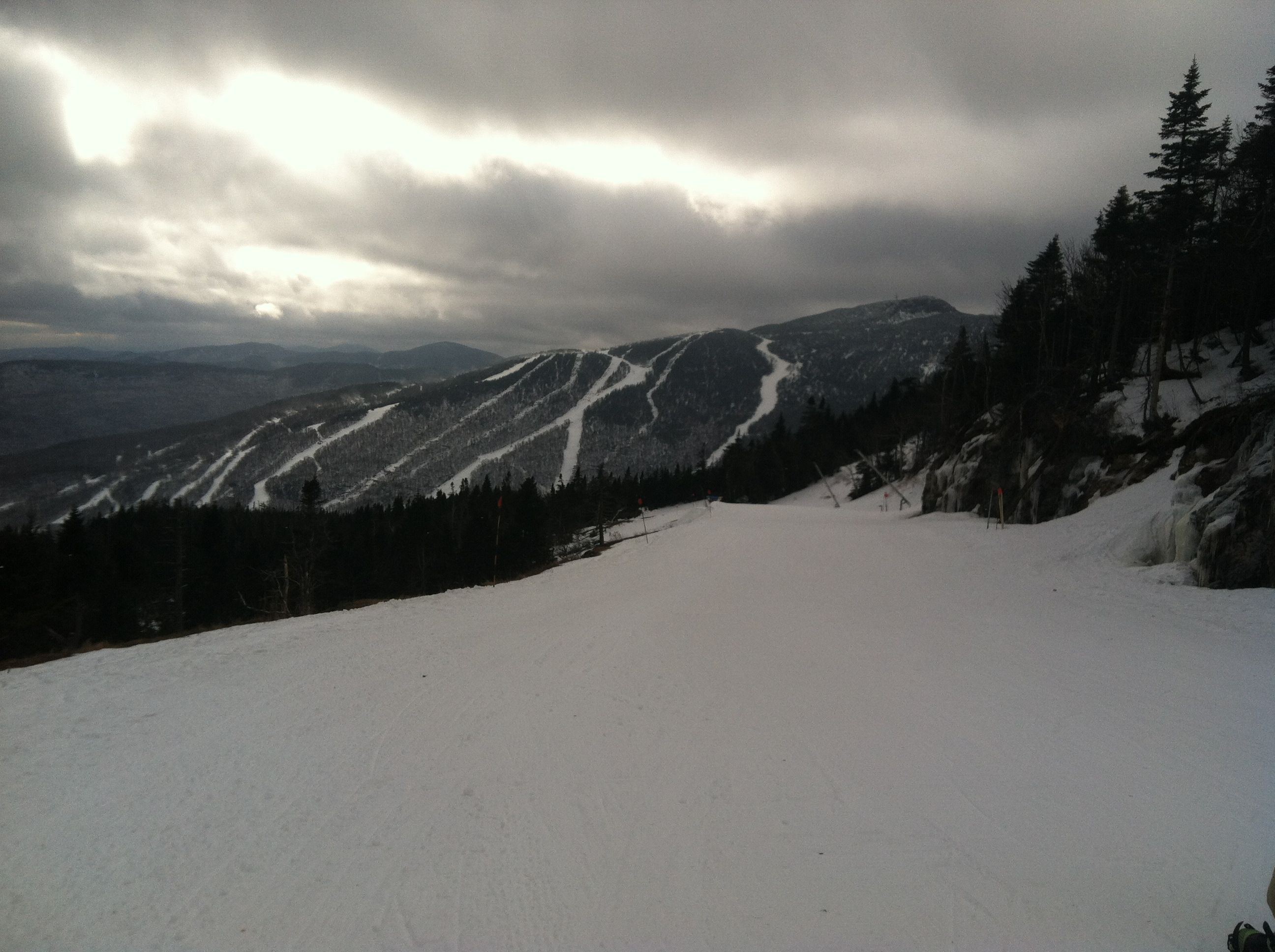 At 3,968 feet above sea level, Jay Peak offers 2,153 feet of vertical drop. Steep runs were made more challenging by the sparse covering of the base. Dodge a rock here, jump a patch of dead grass there. You make the best of it, or It makes the best of you.