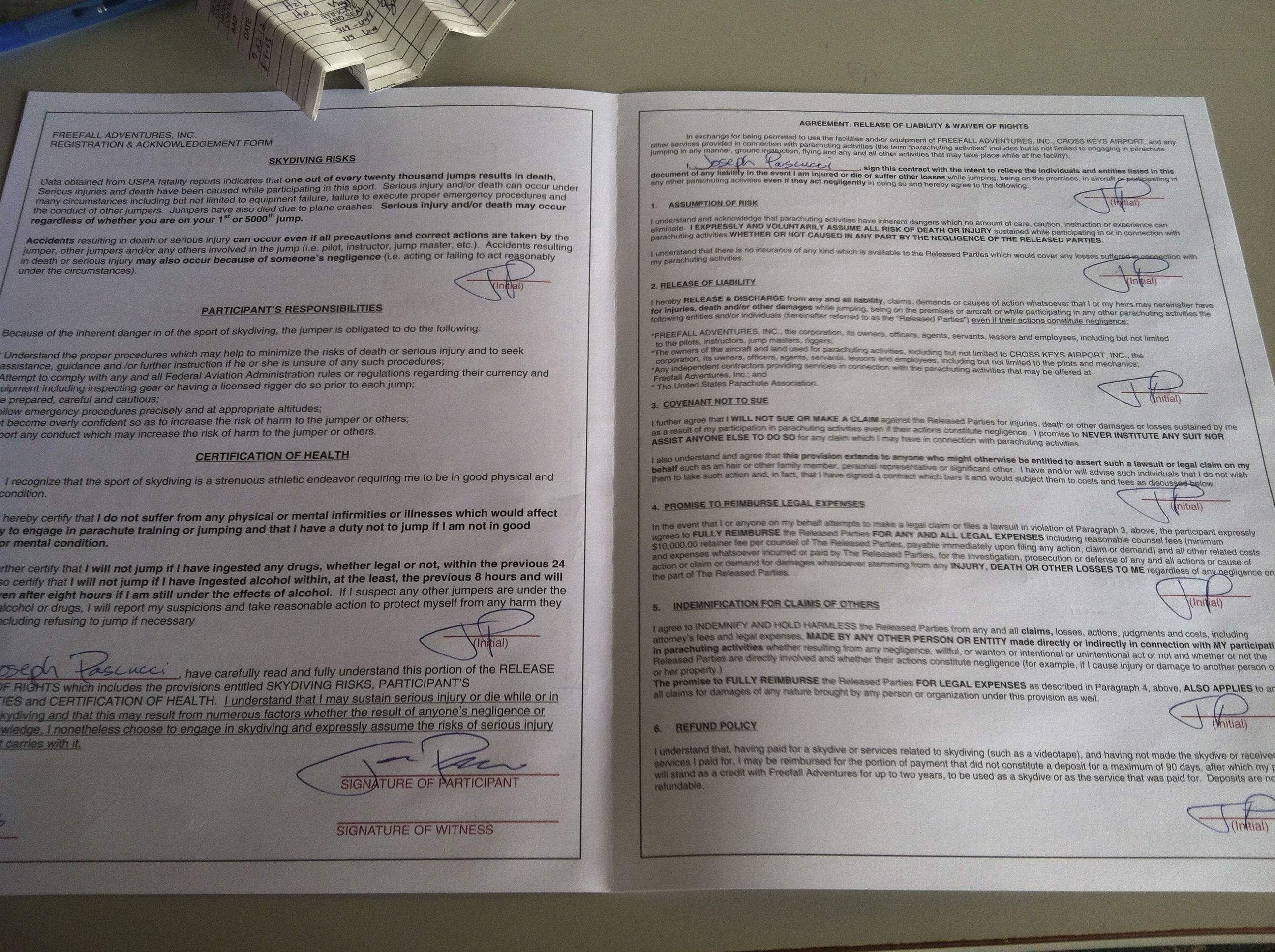 I unloaded my rig and made my way to manifest, where I signed my life away (literally).