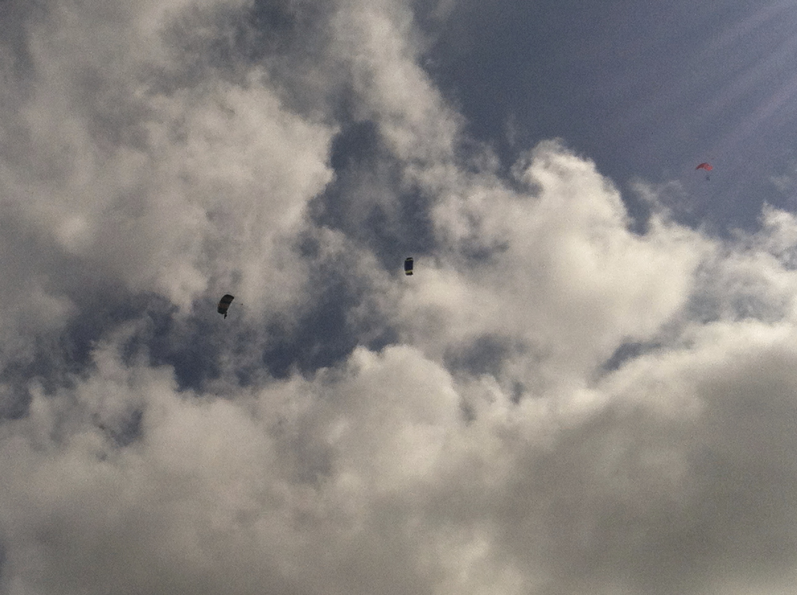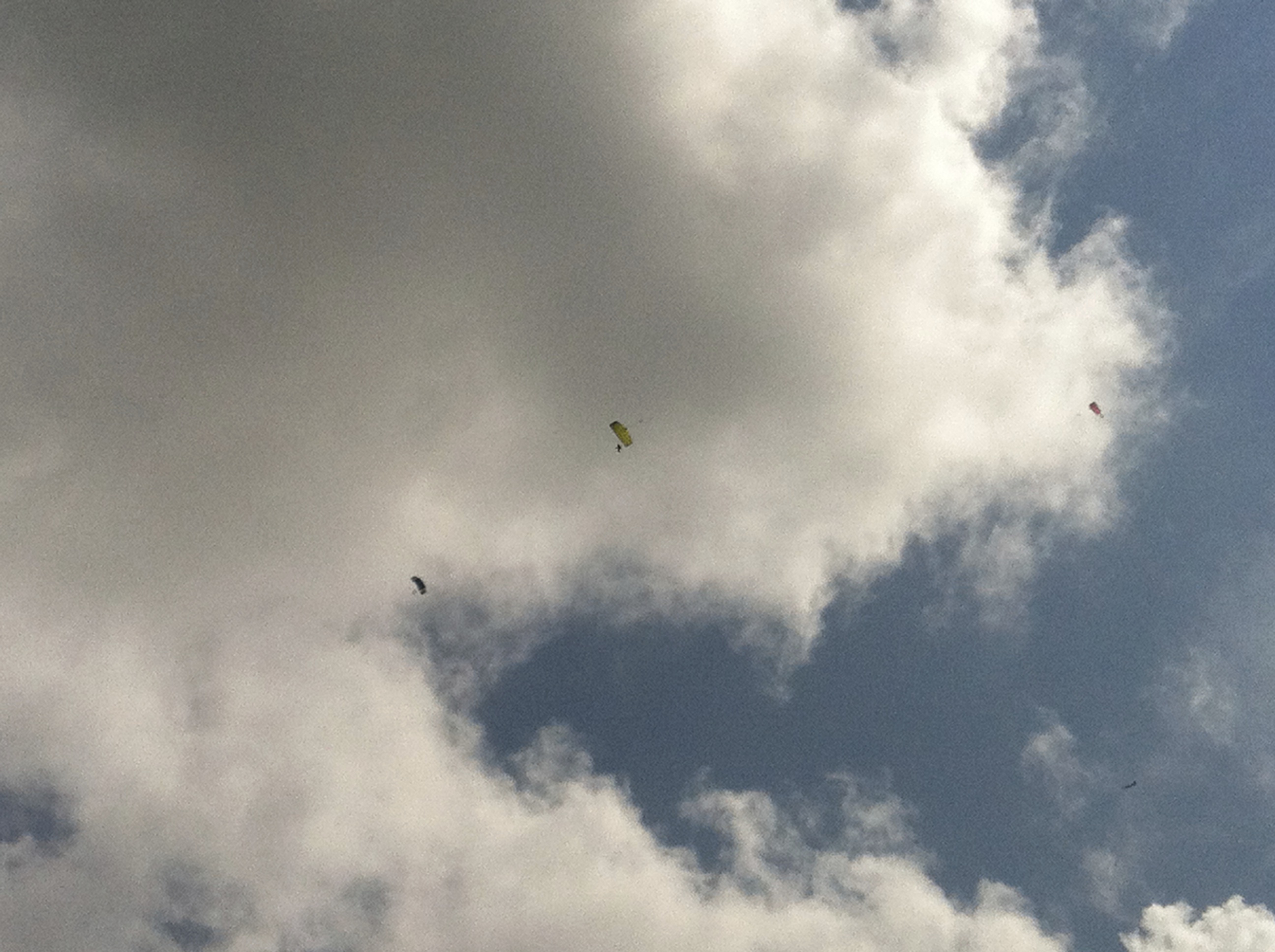 After the second jump, Fancy had a malfunction with his main parachute and had to cut it away and ride his reserve down. However, he landed safely enough to get some pictures with us before I took off.