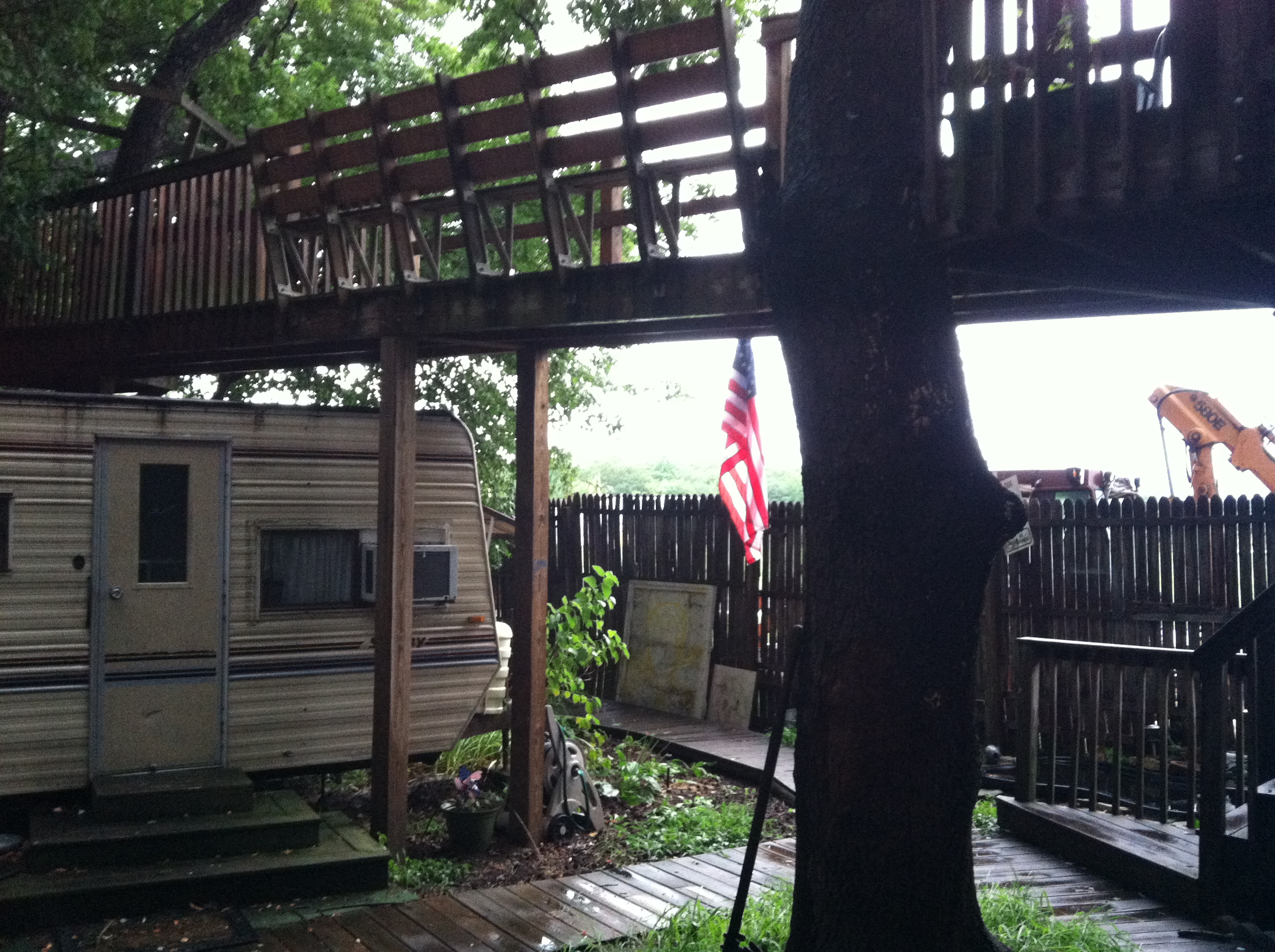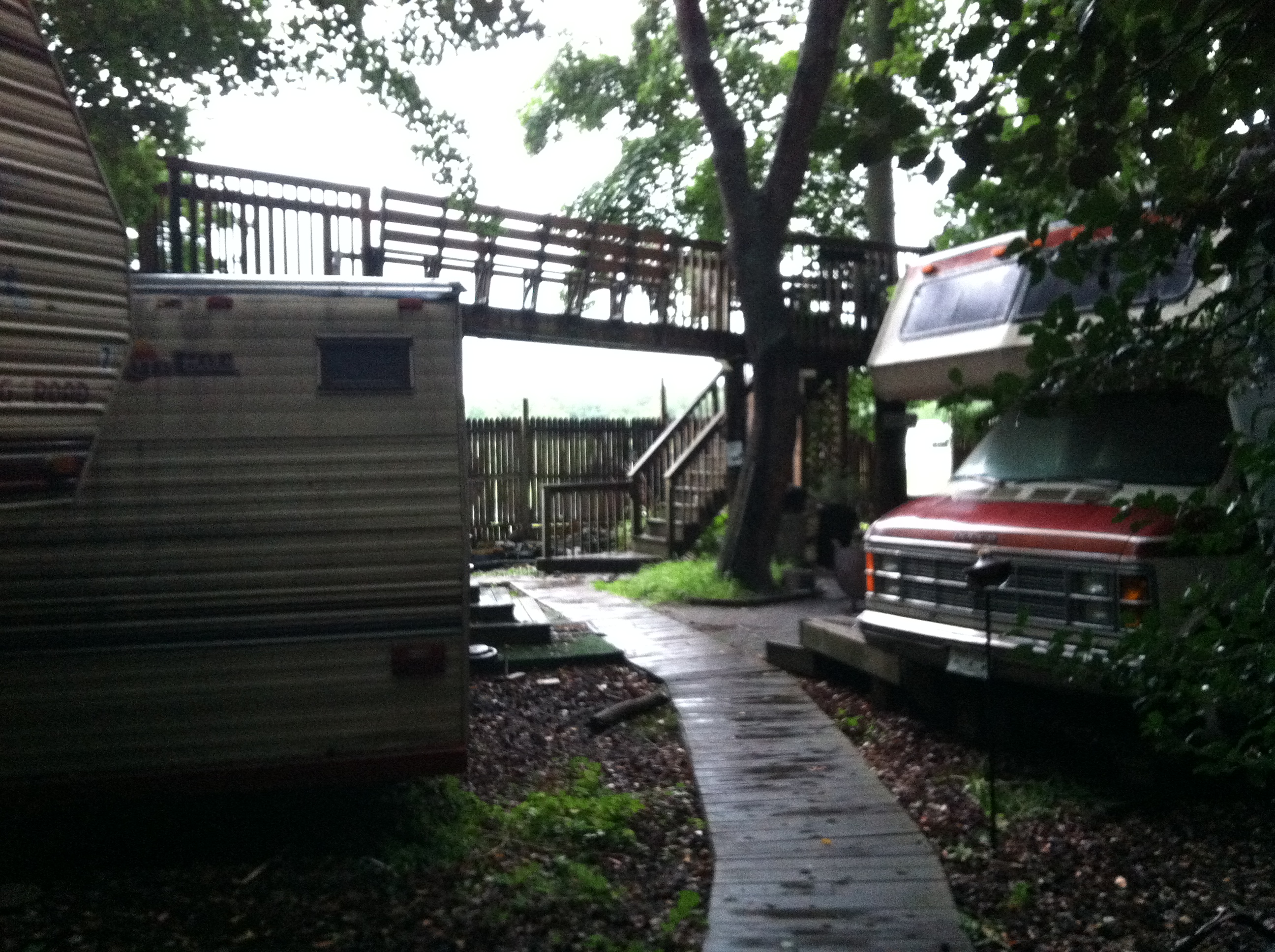 I was offered a beer by the friendly staff and we got to talking with Art, Darren, Whitney and the rest. They were all pretty young and friendly folks who made me feel right at home. We bullshitted a while, and then they showed me around the campsite on the dropzone, which included a bunch of RVs and decks built all through the site.