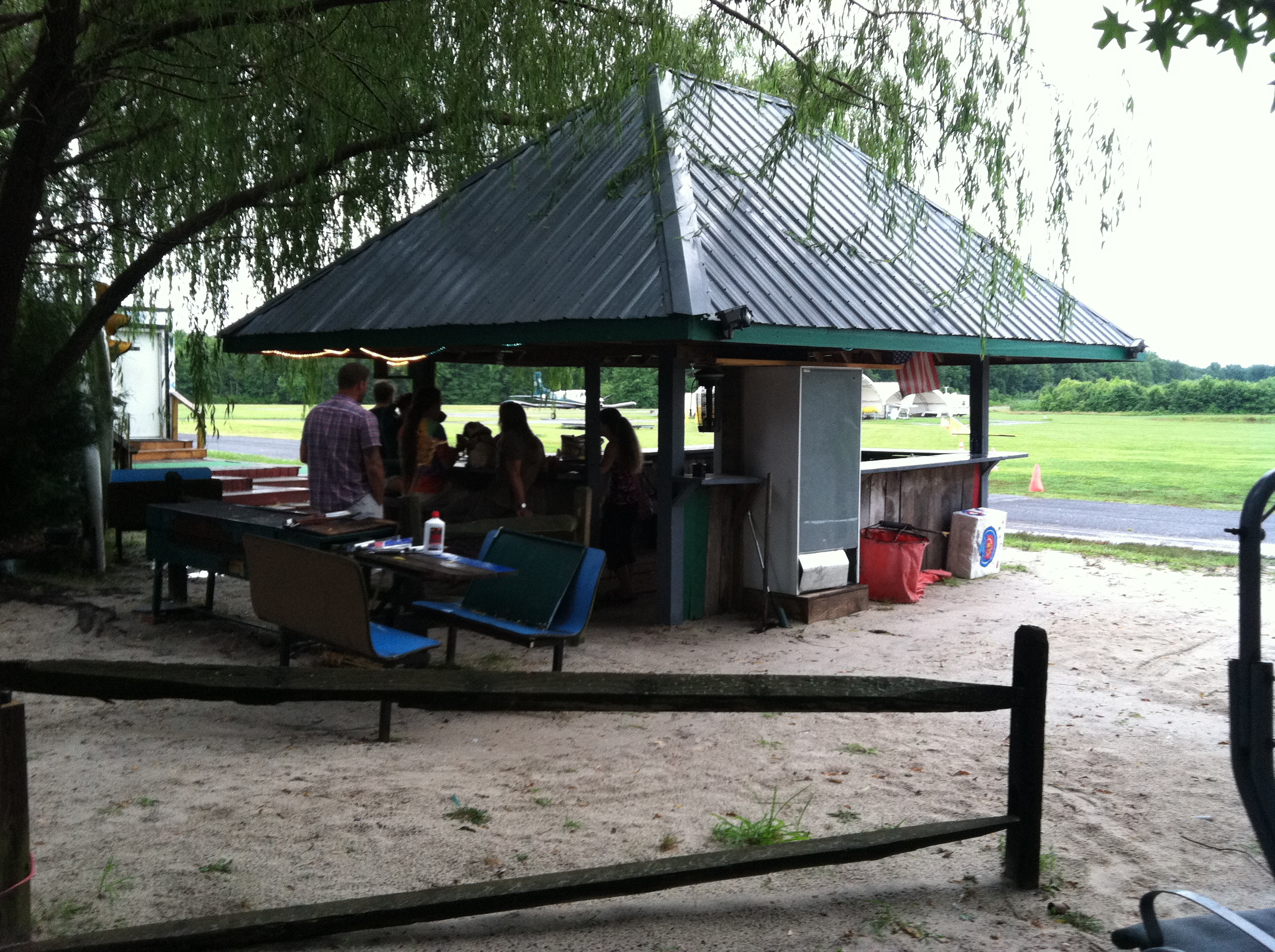 Not long after though, the beers were cracked. For those of you who don’t know, that pretty much means skydiving operations have ceased for the day. The rain wasn’t stopping so the planes were grounded. Everyone headed toward the tiki bar to try to stay dry and wet at the same time…