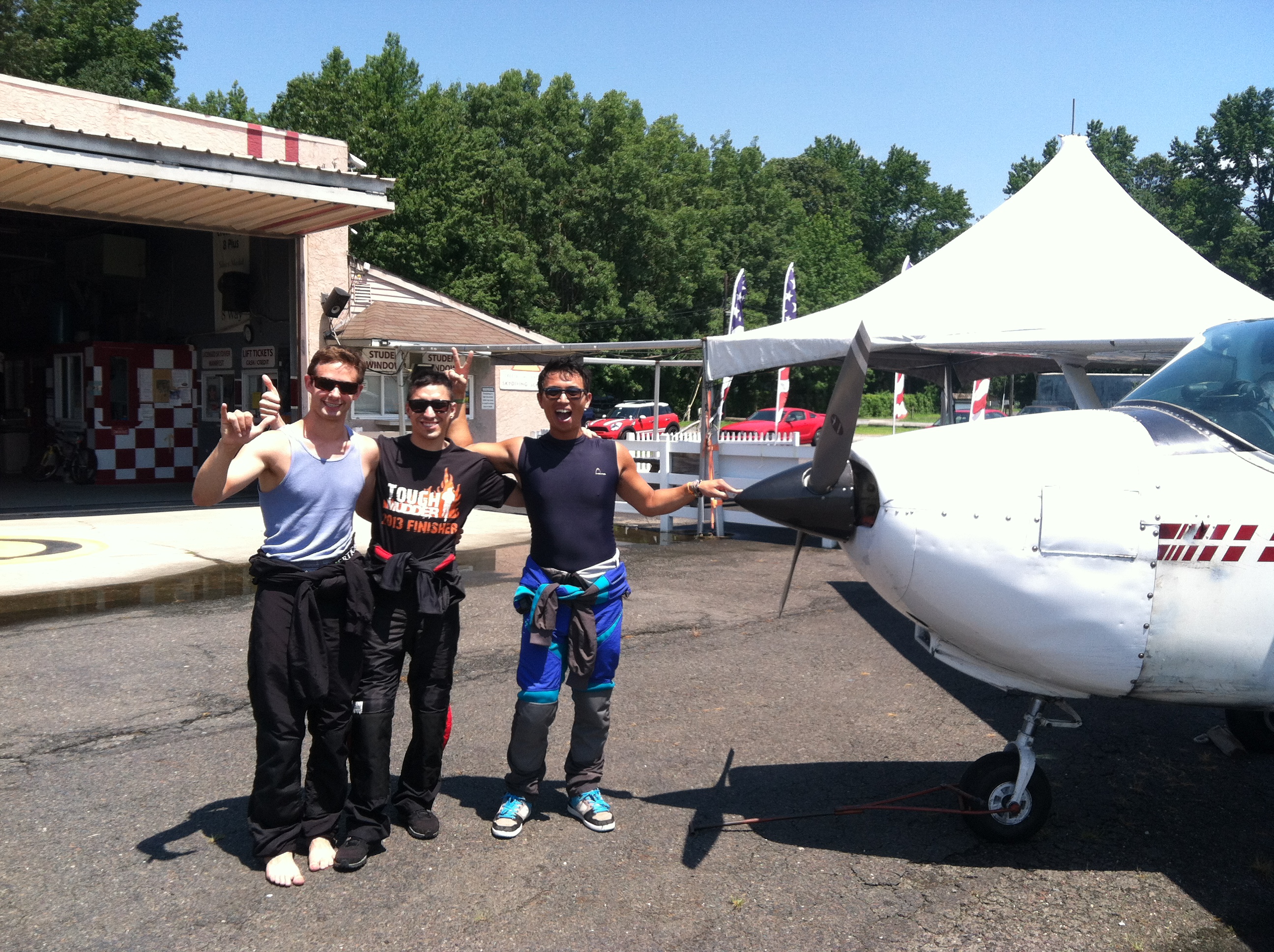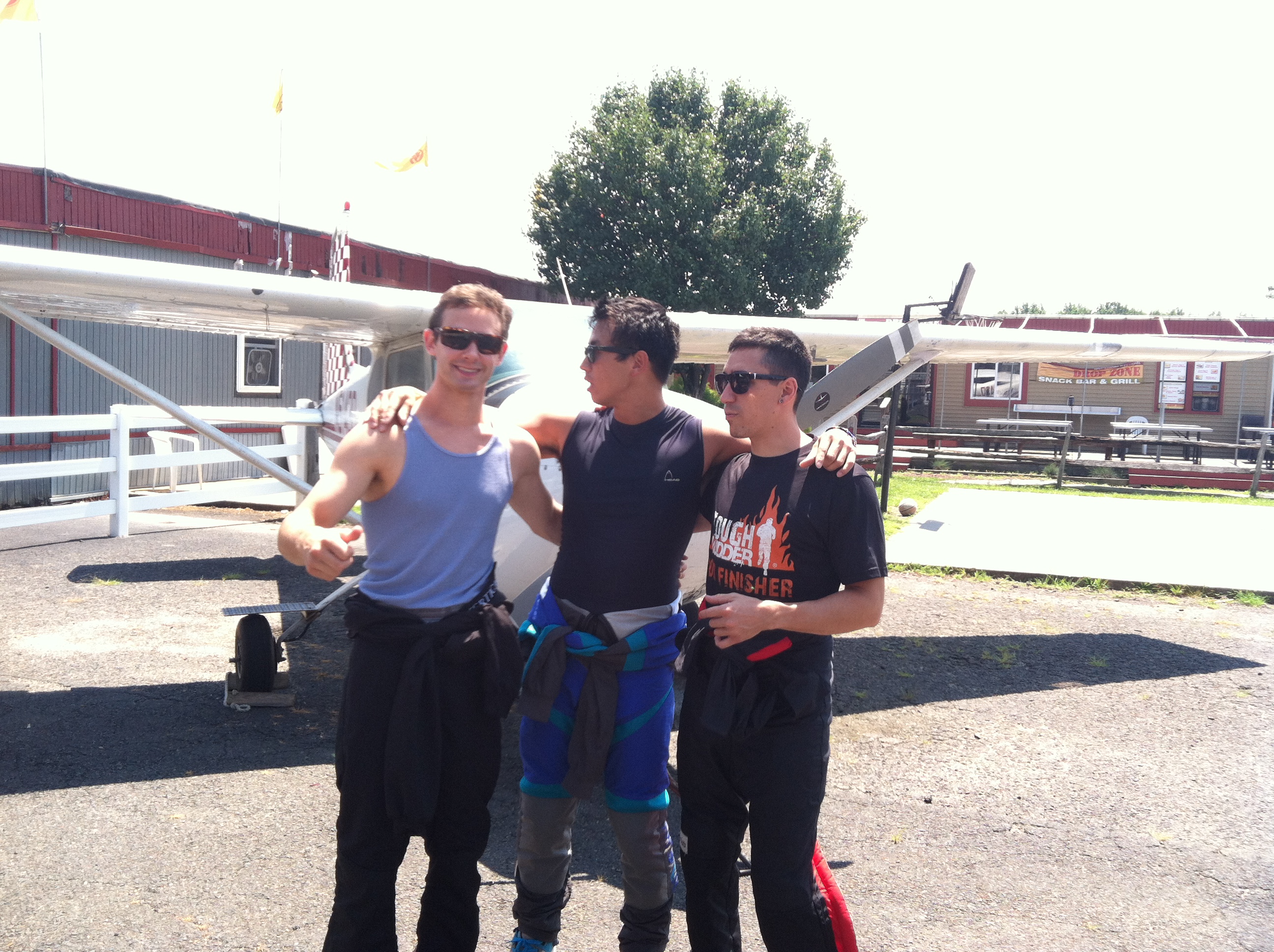 The dropzone finally opened at 10 am, and I got my name on the first load. While waiting for it to fill up and take off, I met two other fun jumpers (licensed solo jumpers) and we decided to do a three-way formation.