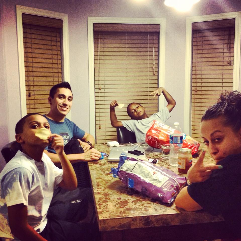 The next day, I got to hang out with Kasheim and Remel while the adults went to work and the youngest, Braylin, went to daycare. I cooked up some eggs and sausage for breakfast while Remel watched spongebob and Kasheim slept.