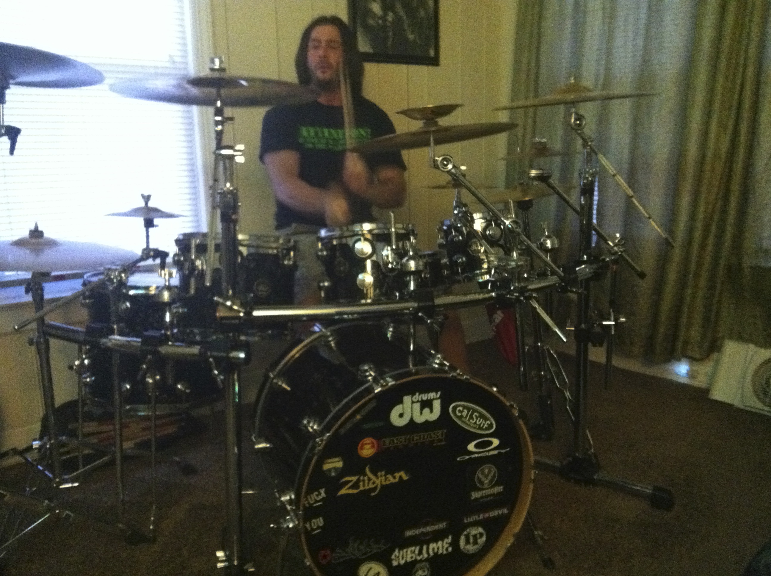 When we got back the wings were almost done. Mike jumped on his drum kit, one I could never forget, and played me some beats while making funny faces, as seen below.