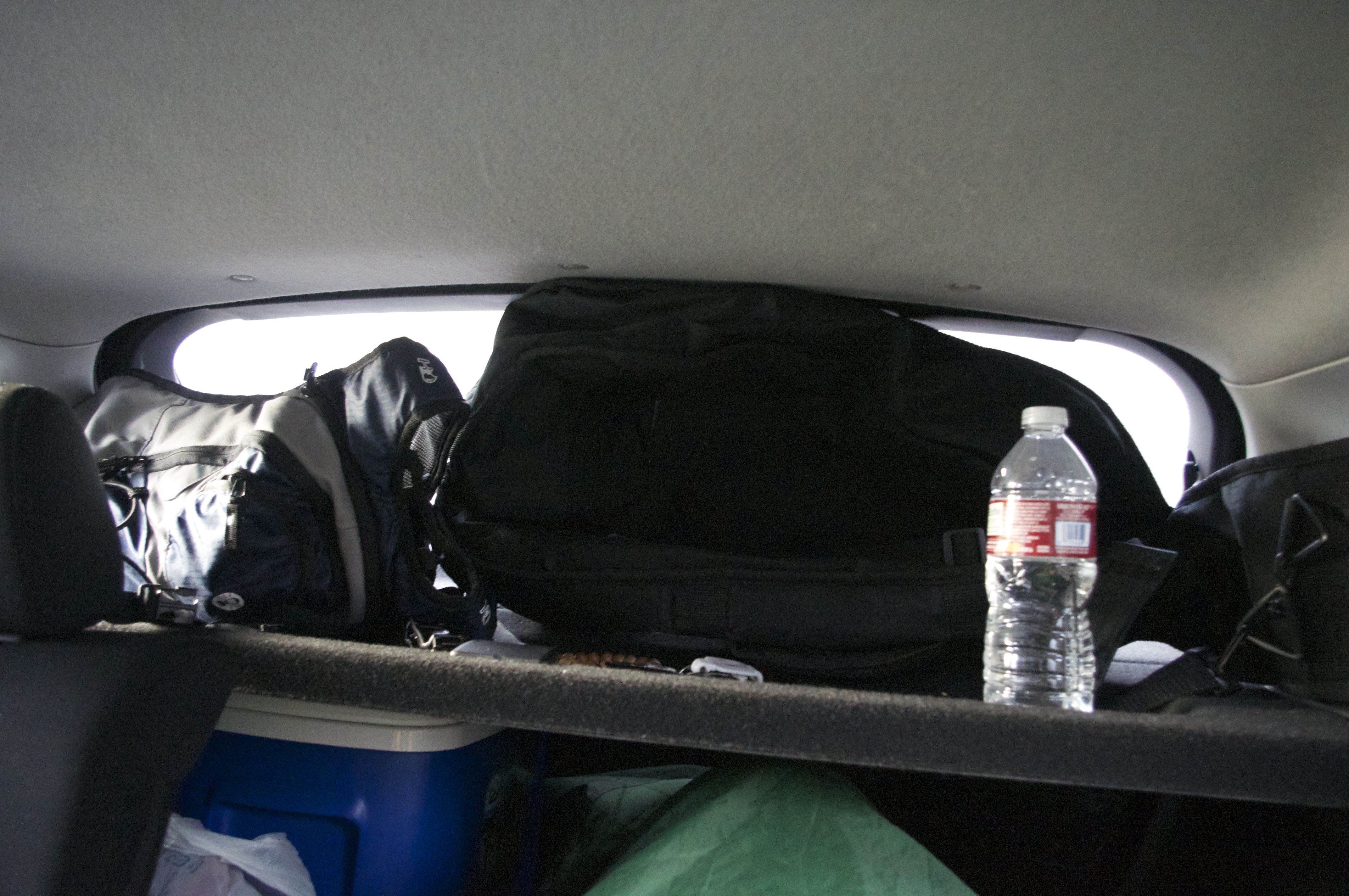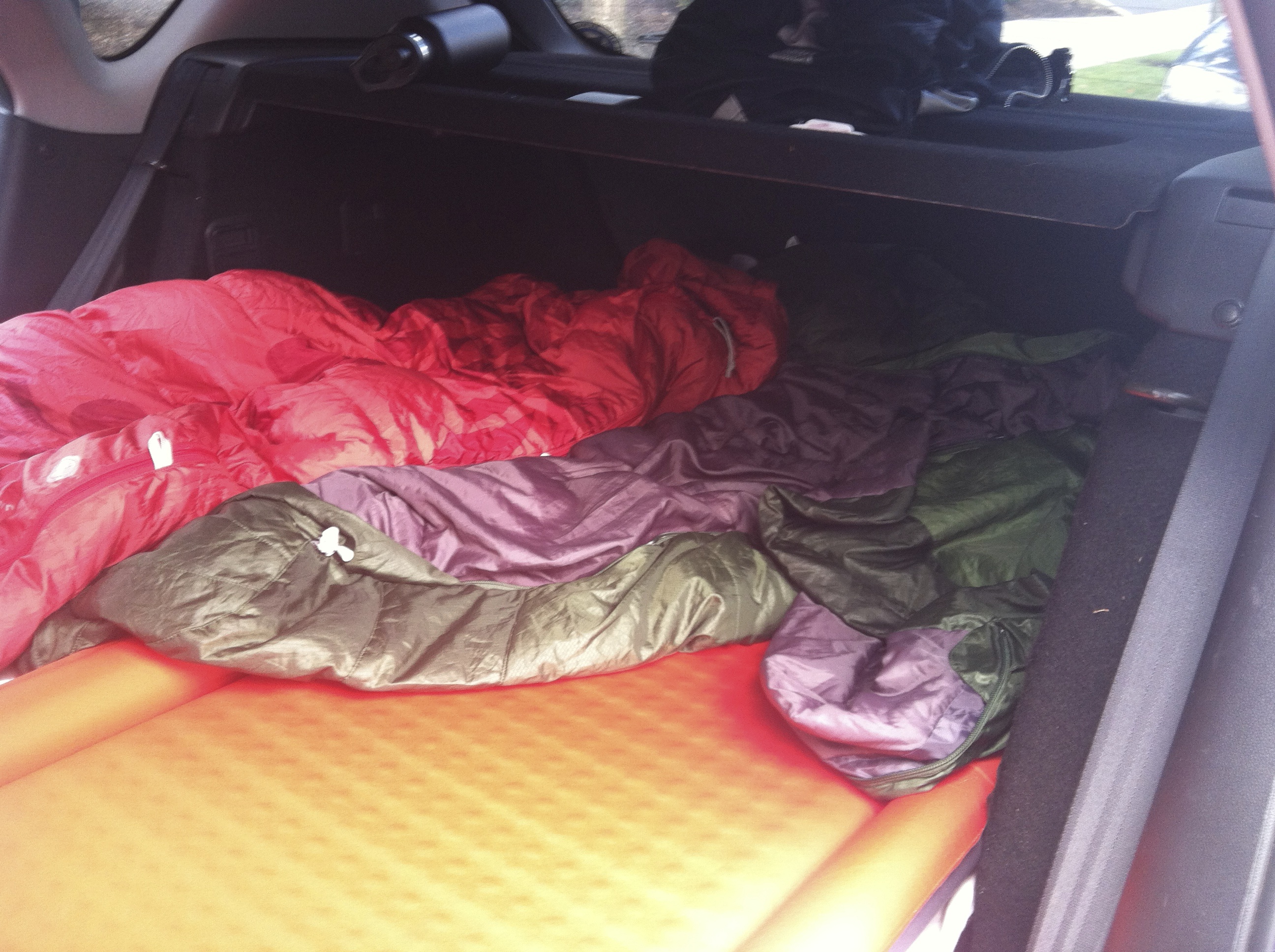 1. Test out your vehicle for space and comfort. If you are in a car you can easily drop the back seats down and slide the front seats forward to make plenty of room to stretch out. Do you fit? It might not be perfectly comfortable now, but as long as there is space we’ll handle that later.