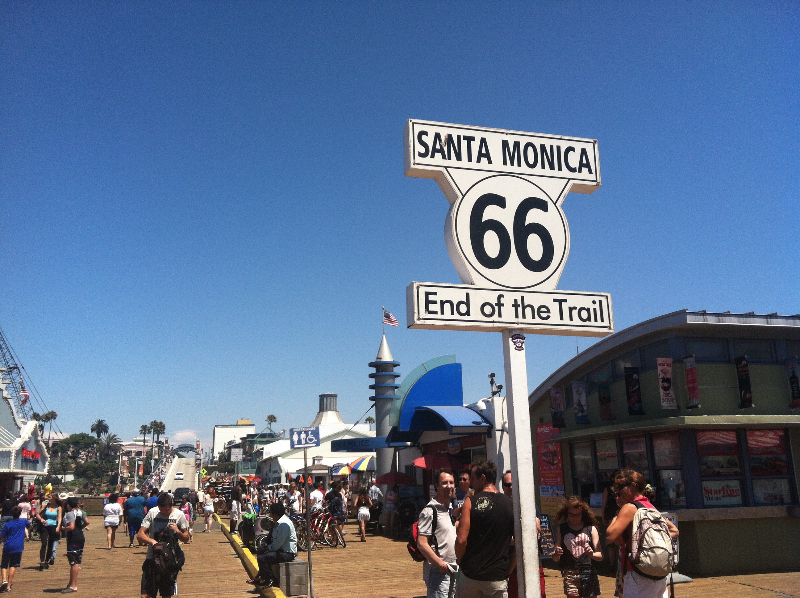 I took a drive to Santa Monica, the beachside community which marks the very end of the road for Route 66, a road that I was off and on since Texas.  My car was filthy from the dirt of states spanning the east coast straight to the west coast.