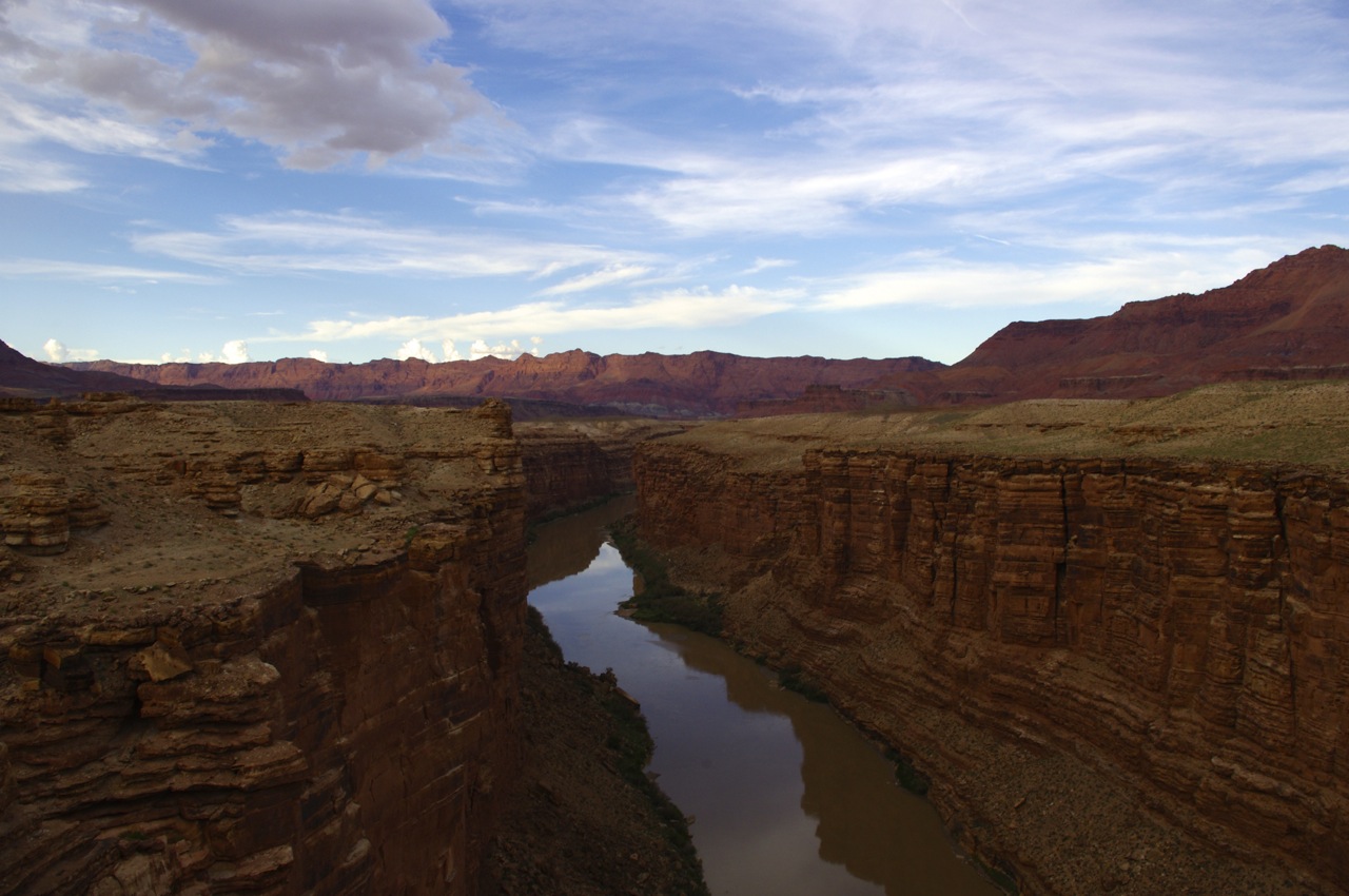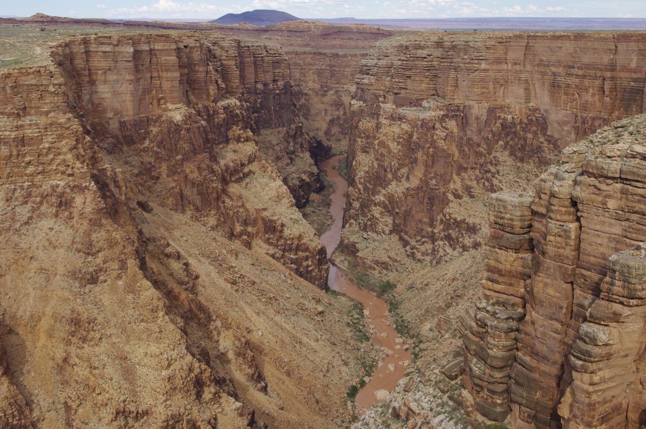 When we left the official boundaries of the Grand Canyon, we drove into Navajo land, where a roadside canyon drops straight down to the Colorado River.